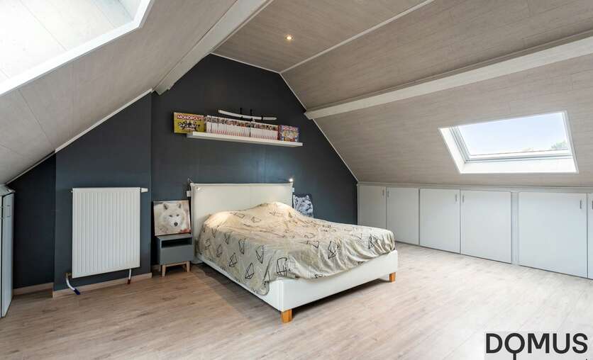 Verder werd ook gedacht aan praktisch comfort: zo is er een inpandige garage en een extra atelier/werkruimte, ideaal voor hobby’s, thuiswerk of bijkomende opslag. De aanwezigheid van zonnepanelen zorgt bovendien voor een lagere energiefactuur en een milieuvriendelijke woonervaring.